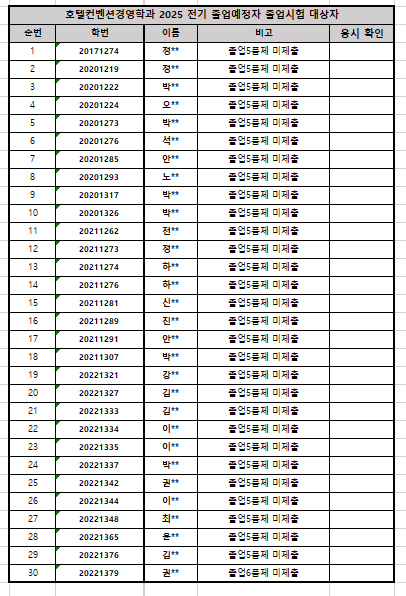 [공지] ★필독★ 호텔컨벤션경영학과 2026-02 졸업대상자 졸업시험 공지(+실적물 제출현황 명단 공지)
